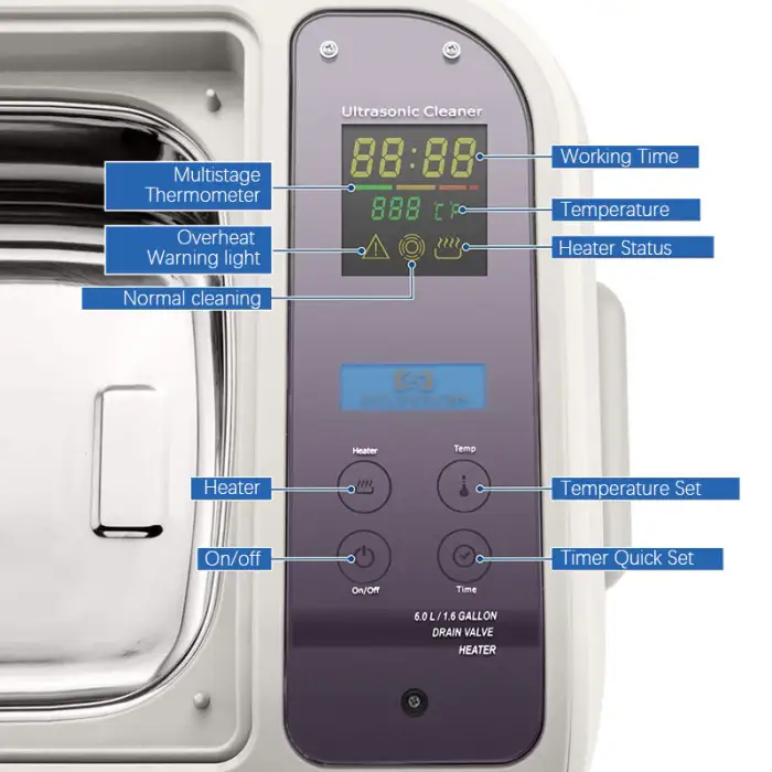 The ultrasonic cleaner has a powerful 300W motor, which effectively removes dirt and grime from various surfaces.