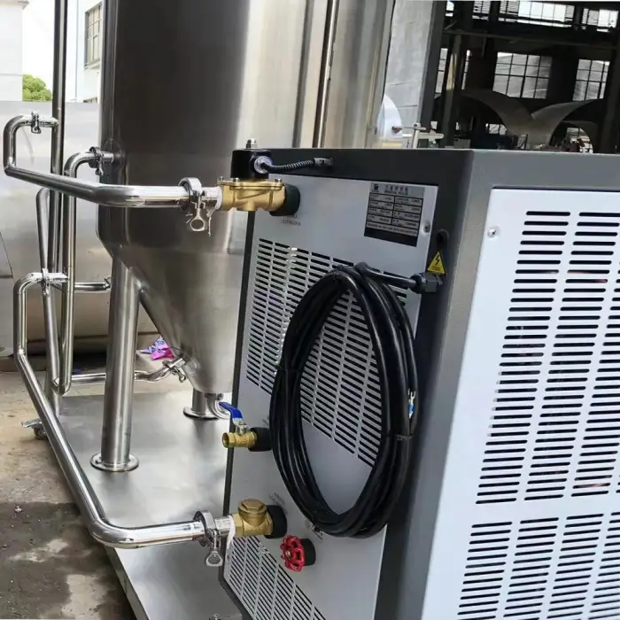 The tank is designed to work with a chiller for effective temperature control during fermentation.