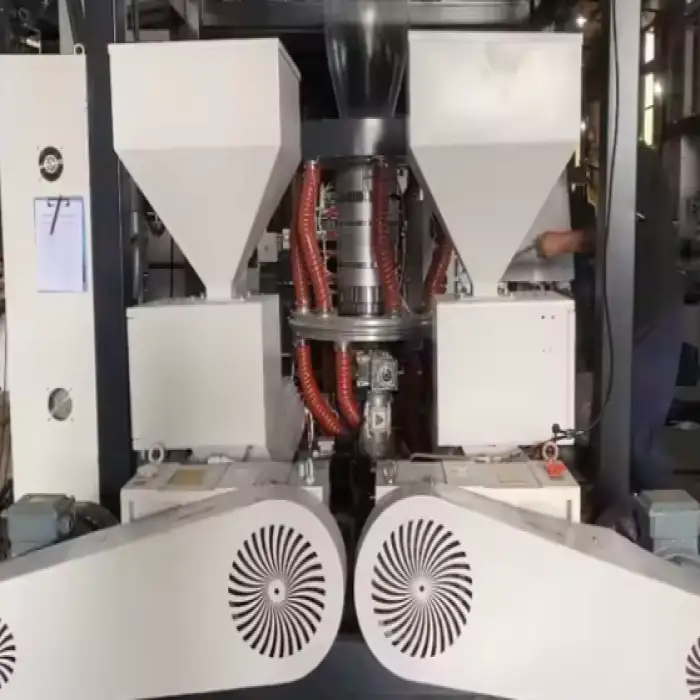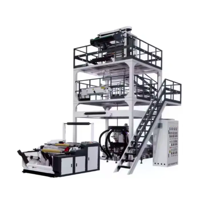 The machine is capable of producing three-layer co-extrusion films.