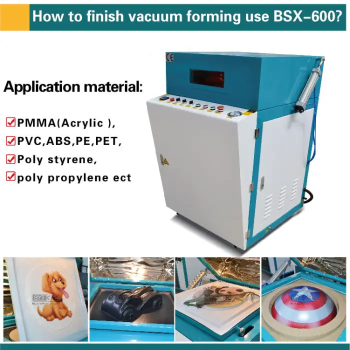 Industries such as advertising, automotive, and general manufacturing can benefit from using the Acrylic Vacuum Thermoforming Machine.