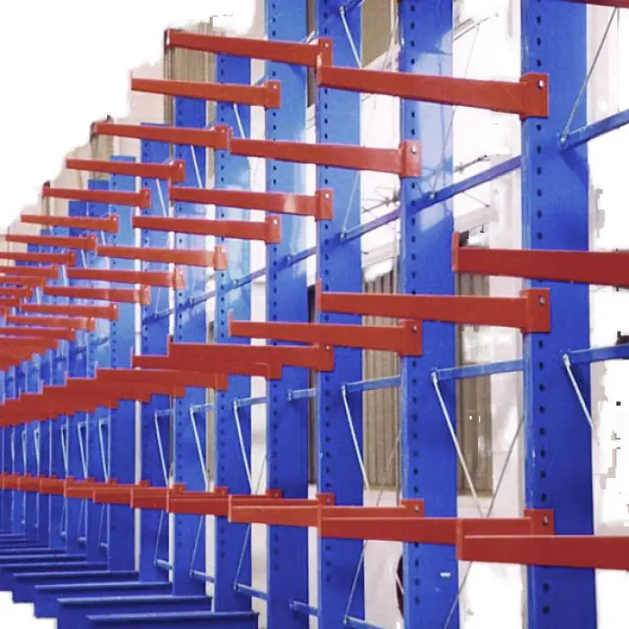 The Adjustable Cantilever Storage Rack is made from strong metal, ensuring durability and stability for your storage needs.