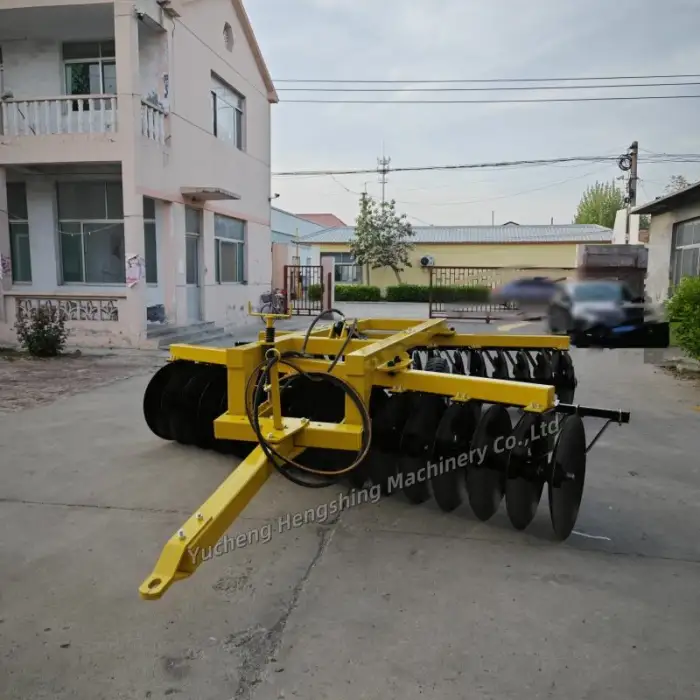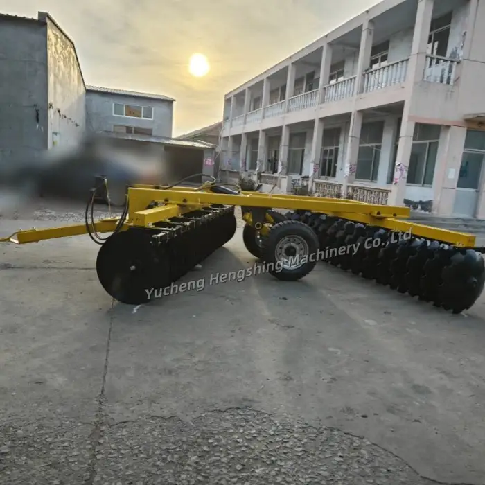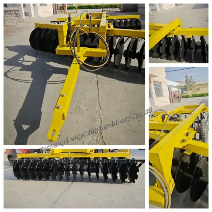 The Agricultural Harrow Hydraulic Heavy Disc Harrows are designed to prepare soil for planting by breaking up clumps, turning over the earth, and creating seedbeds for various types of crops.