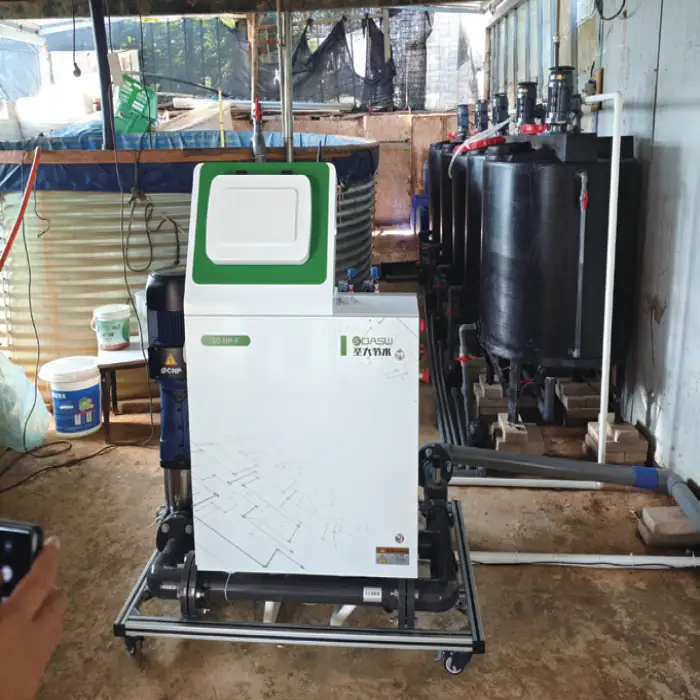The machine enhances efficiency by providing precise amounts of water and nutrients, which is essential for successful hydroponic farming.