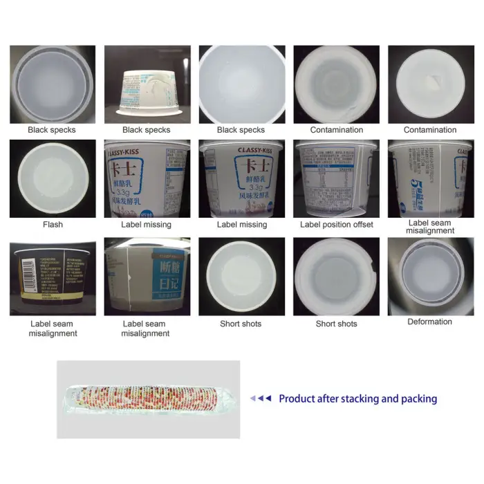This machine is particularly beneficial for food and beverage manufacturing industries that require strict quality control of disposable cups.