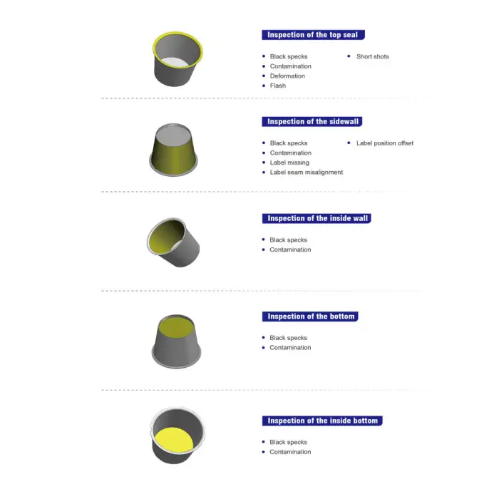 The advanced optical technology uses cameras and sensors to analyze the cups, identifying any defects by comparing them against predefined quality standards.
