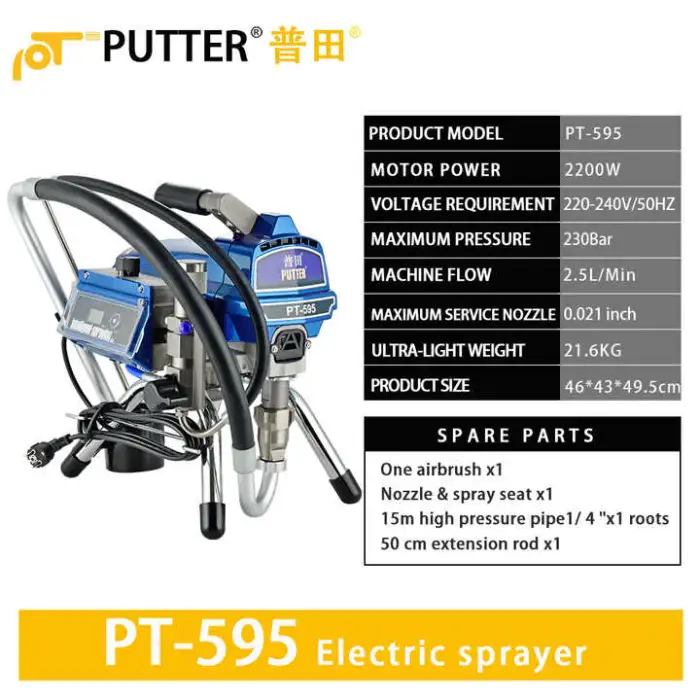 The Airless Paint Sprayer PT595 operates on an electric power source.