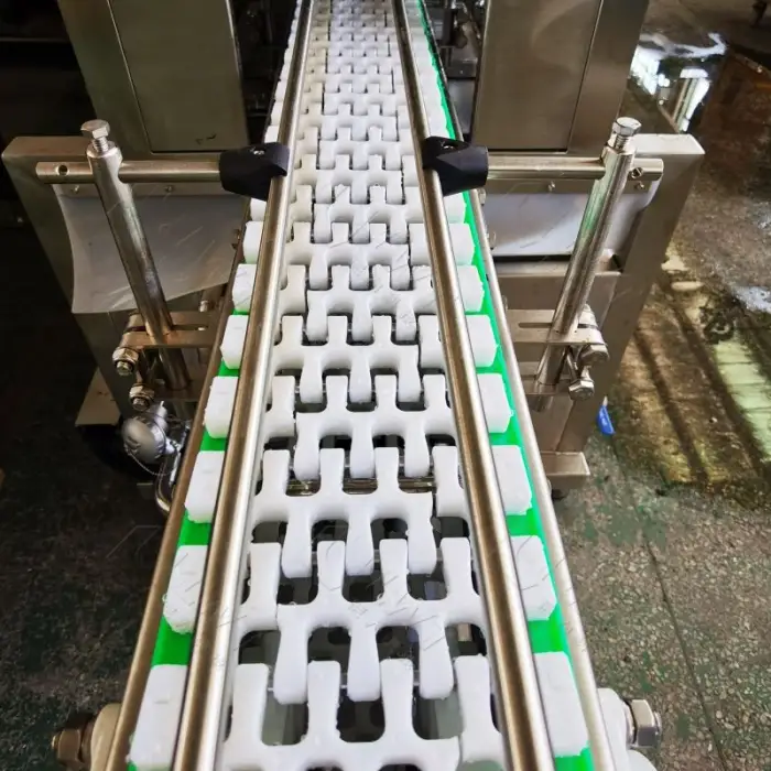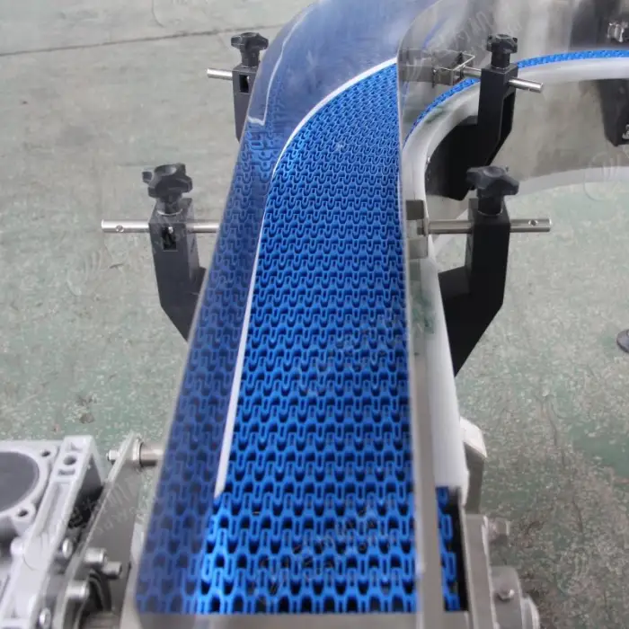 The core components of the conveyor include a PLC, engine, gearbox, and motor.