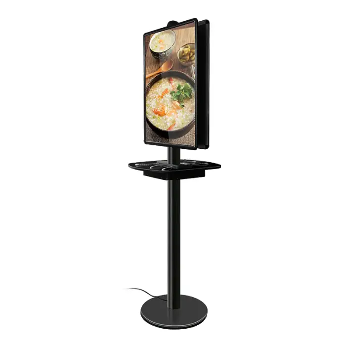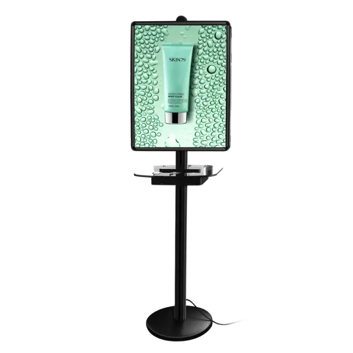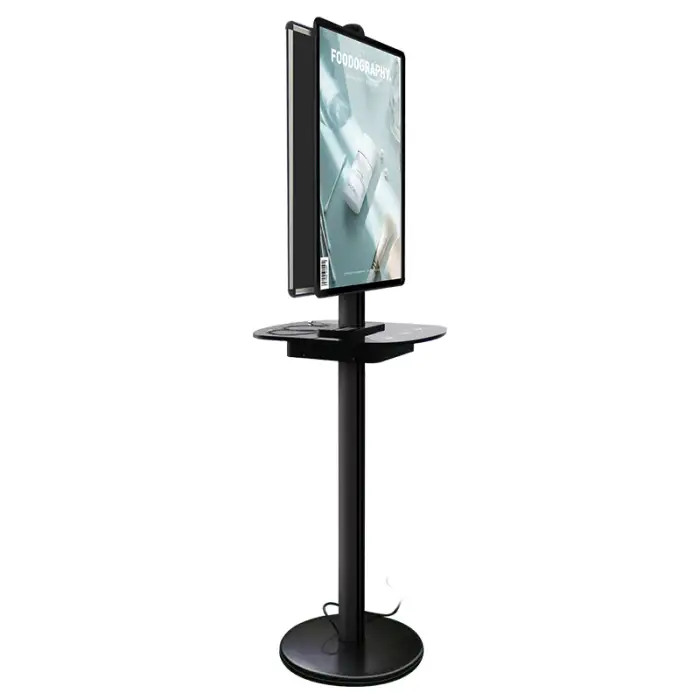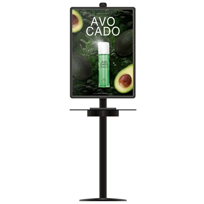 The poster frame allows for advertising, making it a dual-purpose station for charging and promoting products or services.