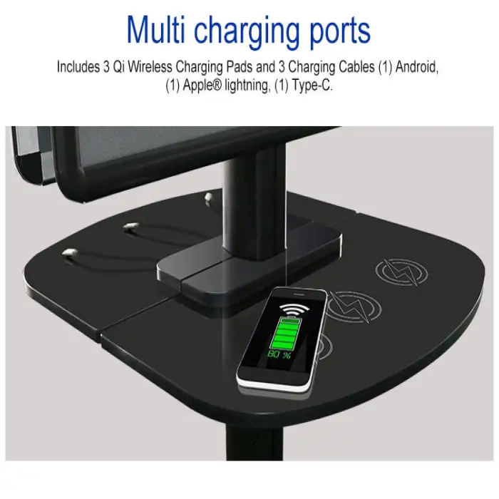 The kiosk incorporates safety features such as surge protection to help safeguard your devices while charging.
