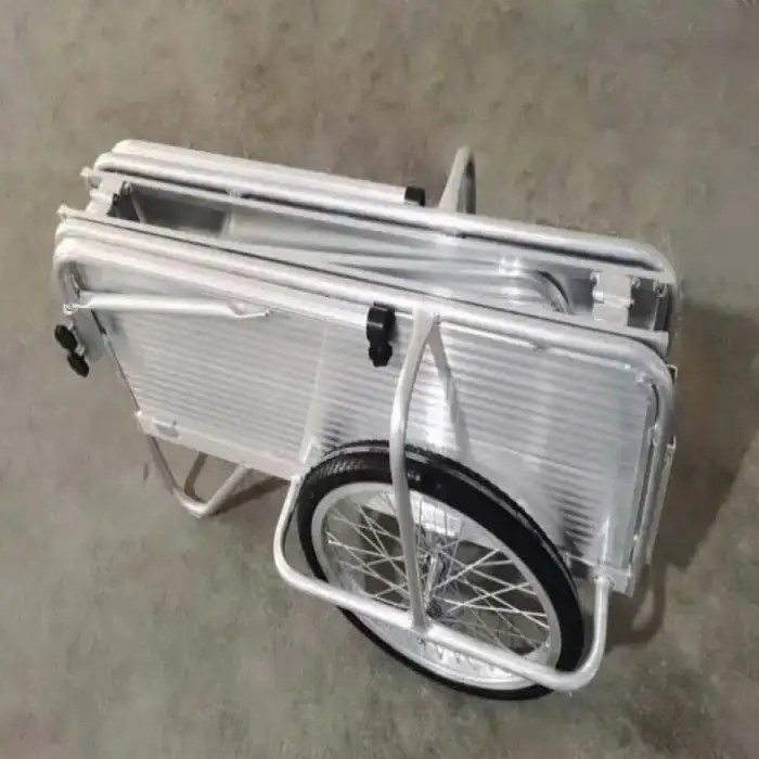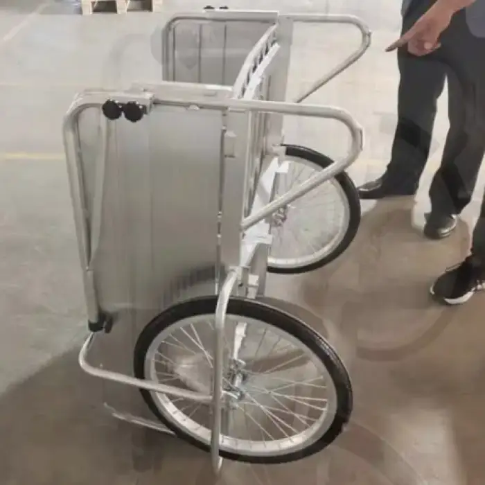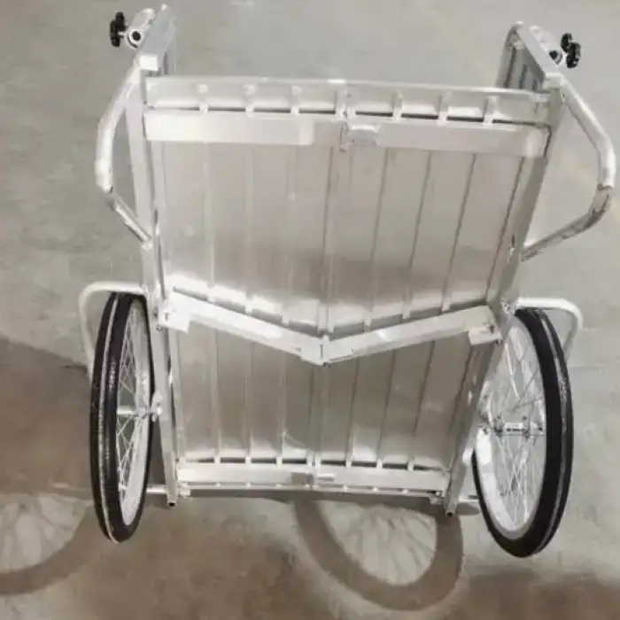 The cart is equipped with two pneumatic wheels, allowing for smooth movement across various terrains.
