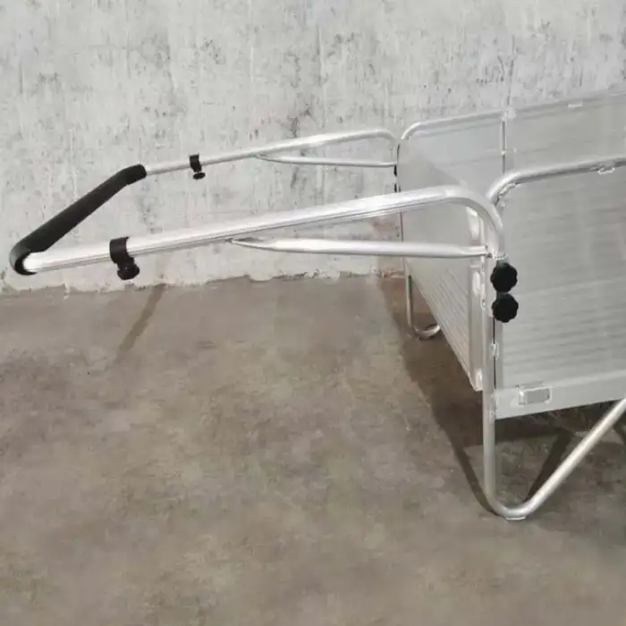 The cart is constructed from lightweight and durable aluminium, ensuring long-lasting use.