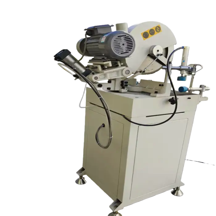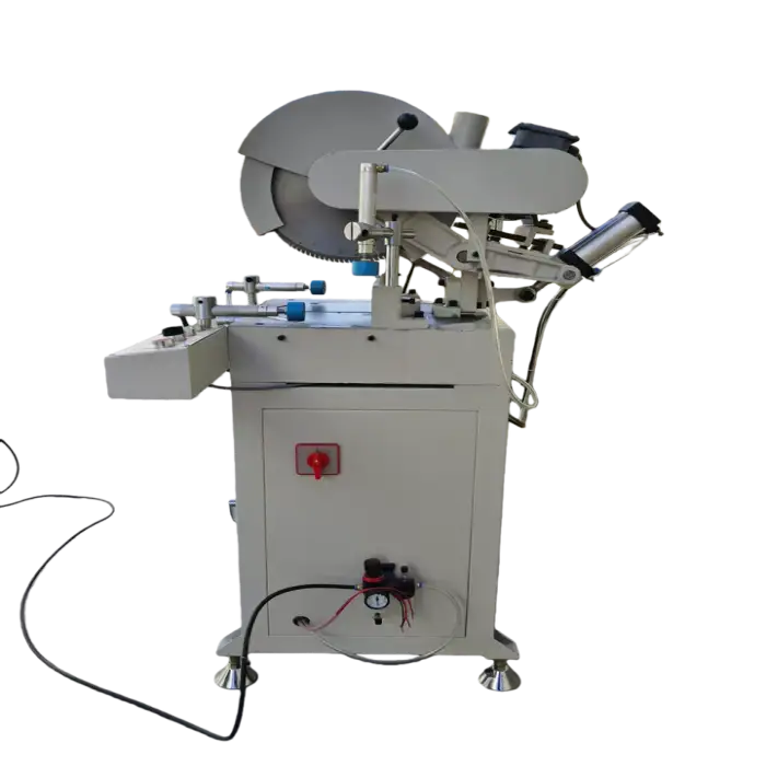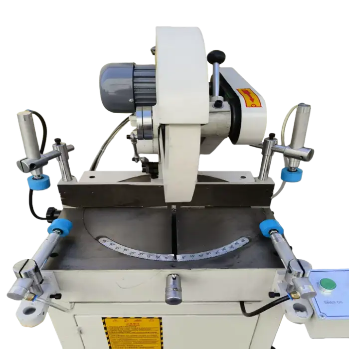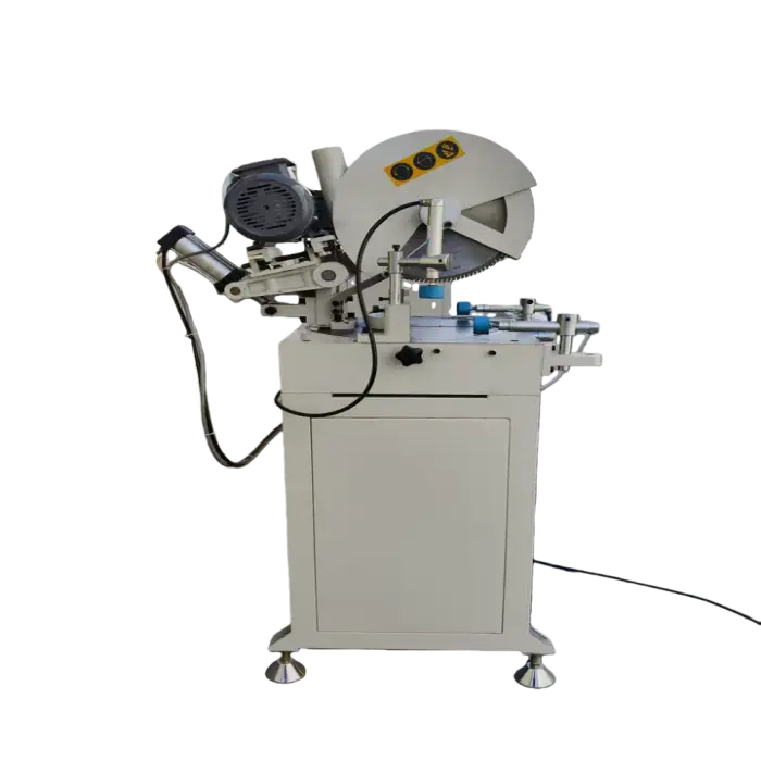 The saw is designed to cut UPVC and aluminum profiles, but it can also handle materials like stainless steel and carbon steel.