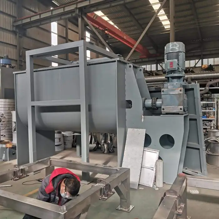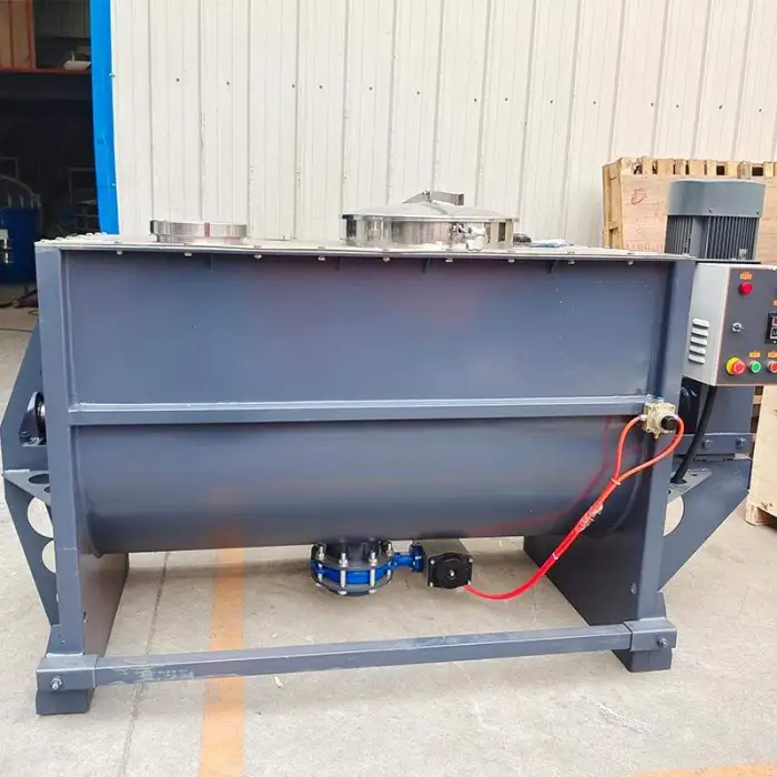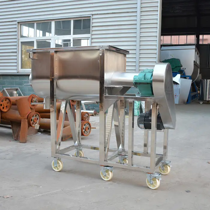 The Animal Feed Ribbon Mixer is designed to blend various materials, including dry powders, granules, animal feed ingredients, chemicals, and plastics.