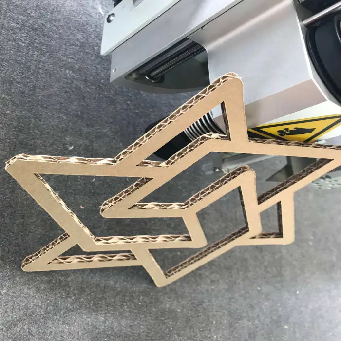 The Aol CNC Knife kiss cut machine can handle a variety of materials including self-adhesive vinyl, corrugated board, and wallpaper. It is designed for cutting materials up to 20mm thick.