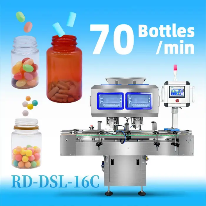 The Arrival Multi Functional Bottle Capsule Tablet Counter has a production capacity of 70 bottles per minute.