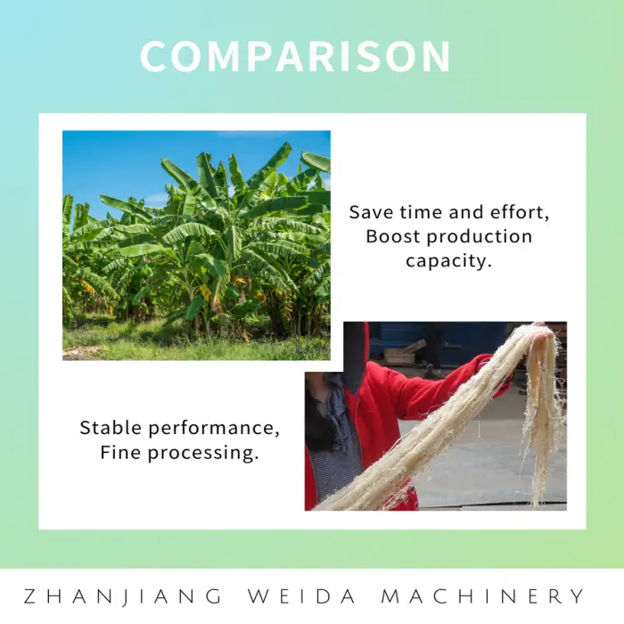 This decorticator is suitable for various raw materials such as banana stems, sisal, jute, pineapple leaves, and hemp.