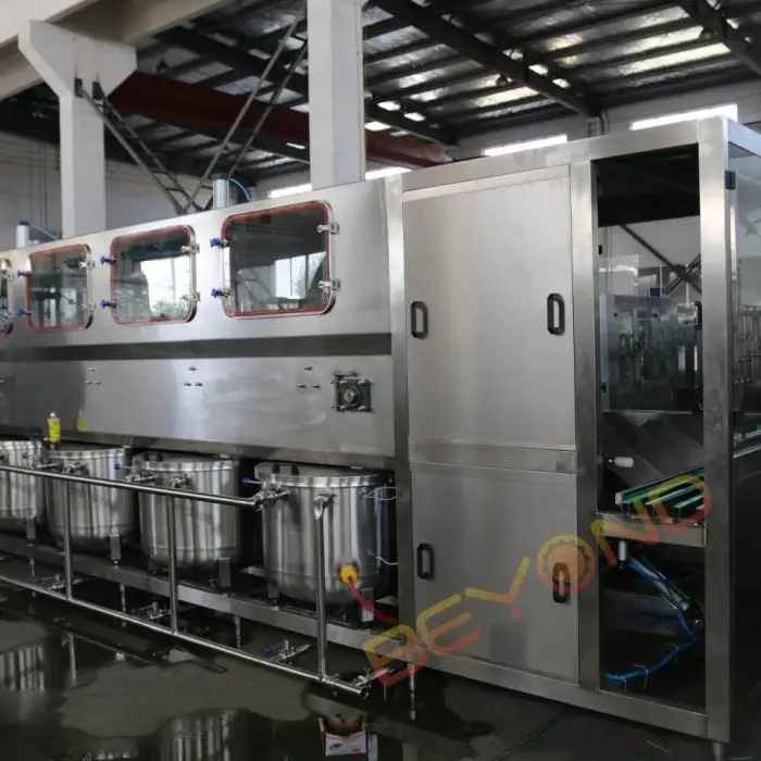This machine is designed to wash and fill 3 to 5-gallon bottles, specifically compatible with PC and PET barrel types.
