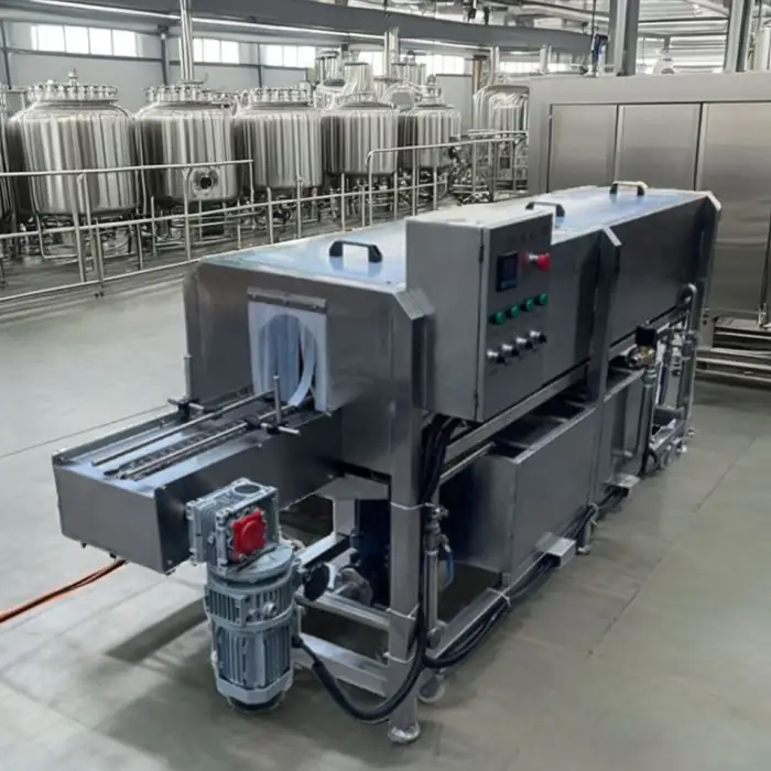 The machine is designed to clean dirty glass bottles, but it can also handle ceramic bottles.