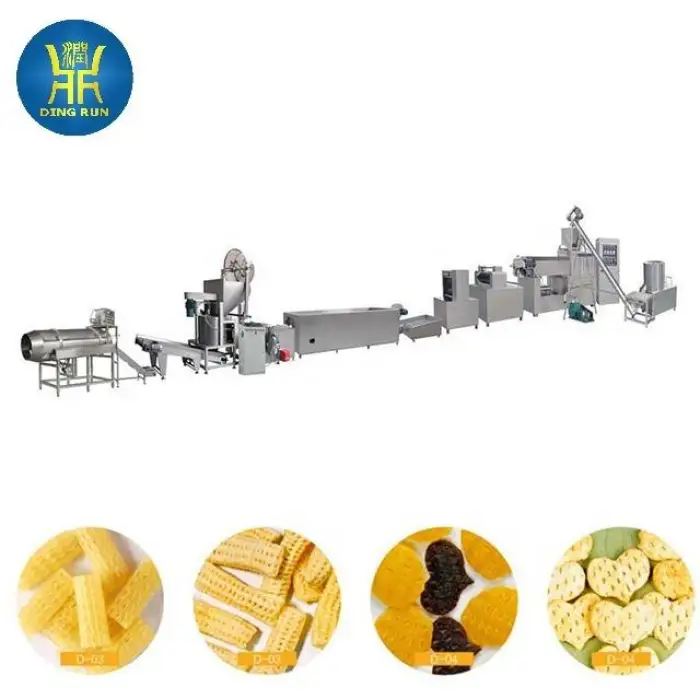 The Automatic 3D Snacks Production Line has a production capacity of 100-150 kg/h.