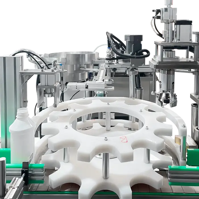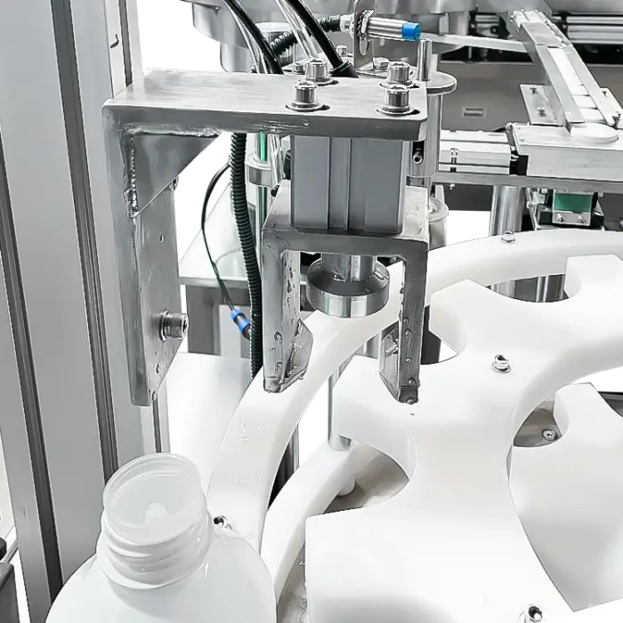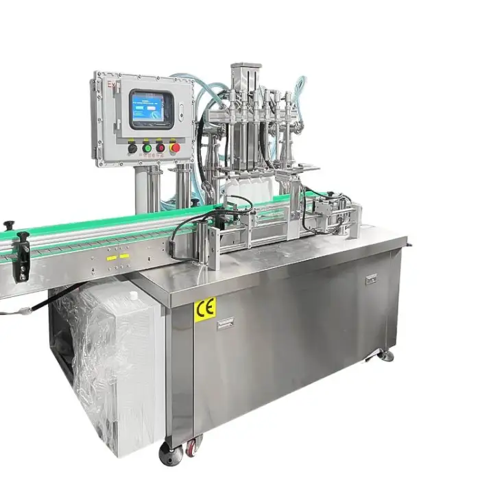 The Automatic 4 Nozzles Laundry Detergent Liquid Bottle Filling and Capping Machine is designed to handle various liquids, including laundry detergents, chemicals, and pigments.