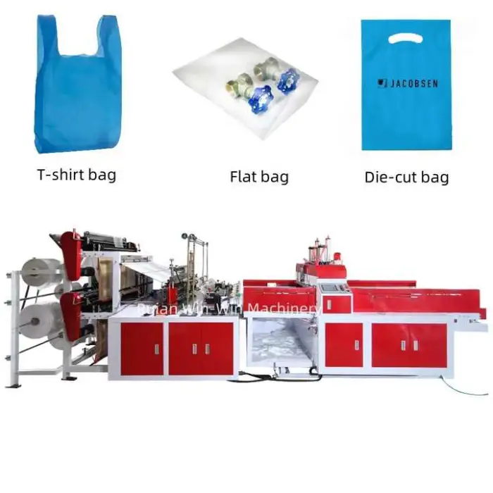 This machine is specifically designed for making T-shirt bags from plastic PE material.