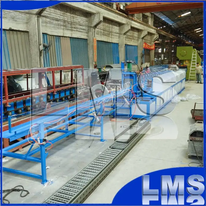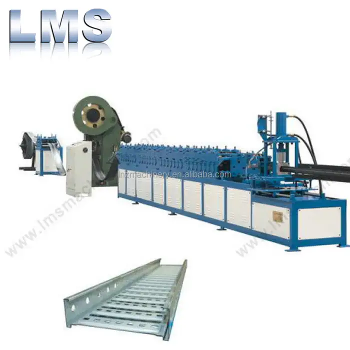 The machine is suitable for manufacturing various types of cable trays, including ladder-type trays for cable support.