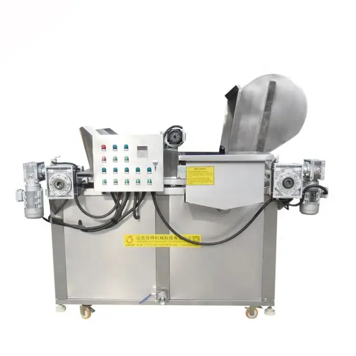 The Automatic Batch Diesel Snacks Frying Machine has a capacity of 25 liters and can produce 100-150 kg of potato chips per hour.