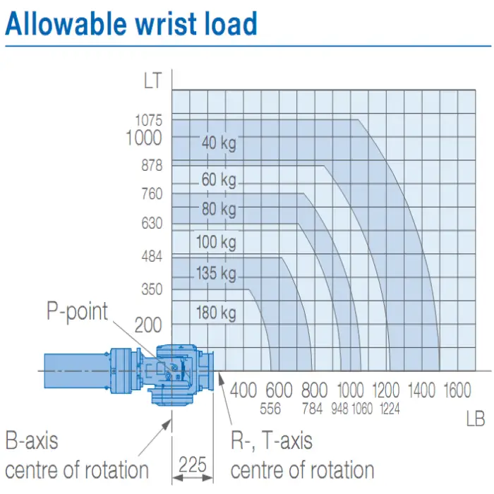The GP180 Handling Robot has a maximum payload capacity of 180 kg.