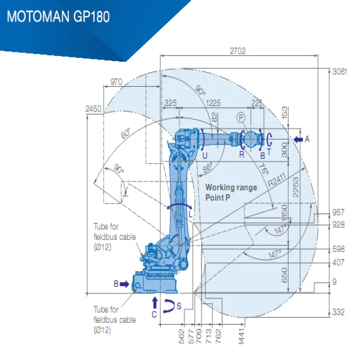 The GP180 can perform tasks such as handling, painting, welding, and automated assembly.