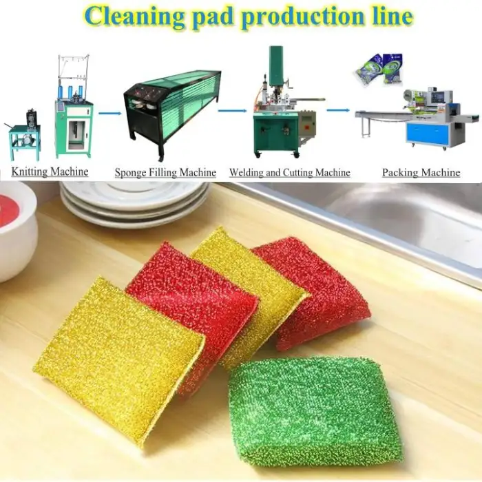 The production line is compatible with materials typically used for kitchen sponge scouring pads, ensuring high-quality output.