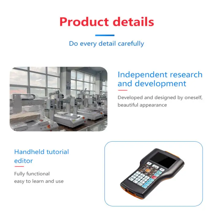 Key features include easy operation through an LCD panel, high precision, fast dispensing speed, large program storage, and robust construction.