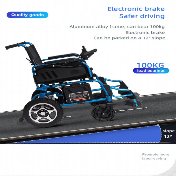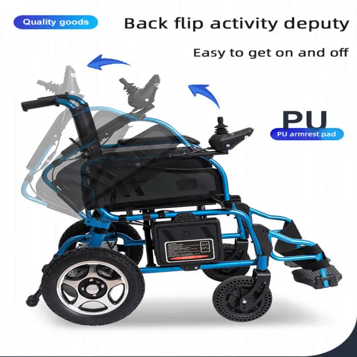 The automatic folding mechanism allows the wheelchair to fold easily with the press of a button, making it convenient for storage and transport.