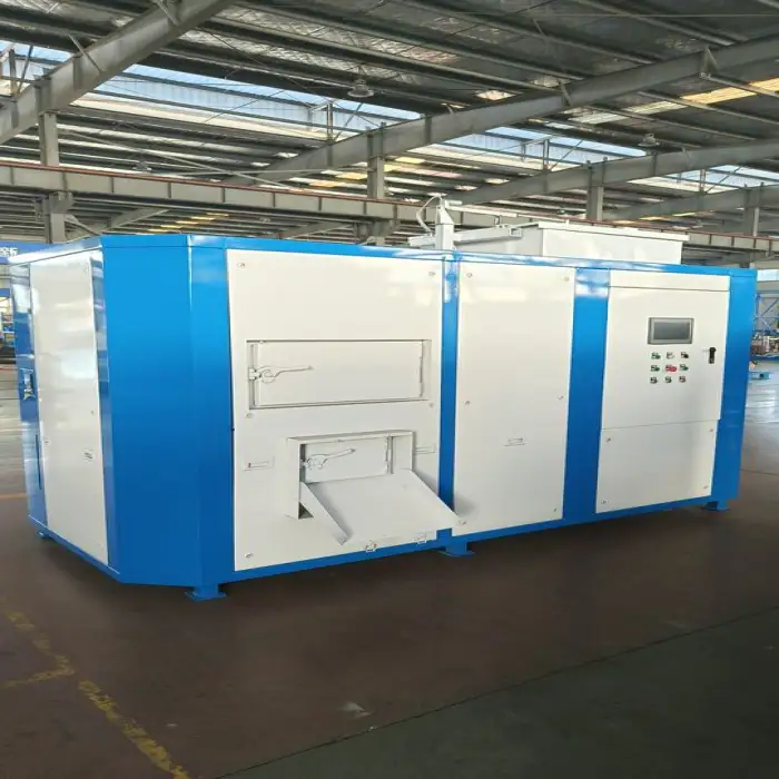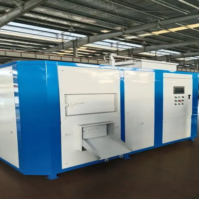The machine quickly transforms wet food waste into organic fertilizer using advanced components like a motor and PLC.
