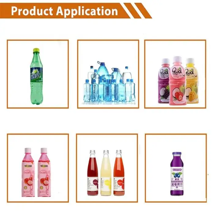The machine is ideal for filling beverages, food products, and chemical solutions for industrial use.