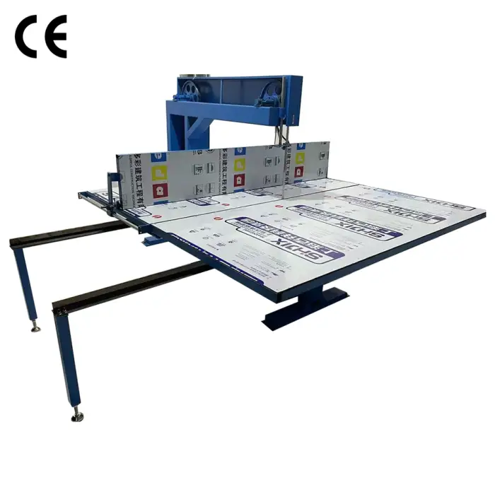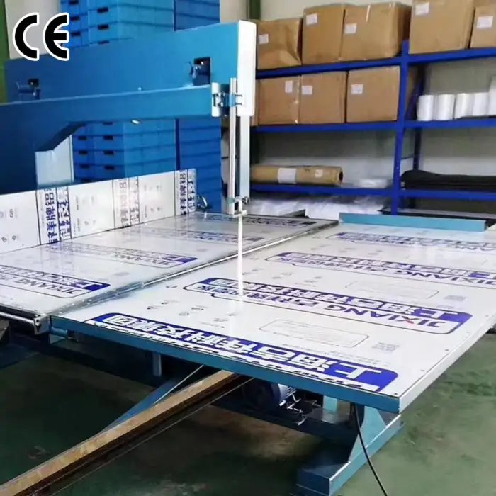 The Automatic High Efficiency Vertical Manual Cutting Machine can handle various materials, including foam, EVA, and leather.