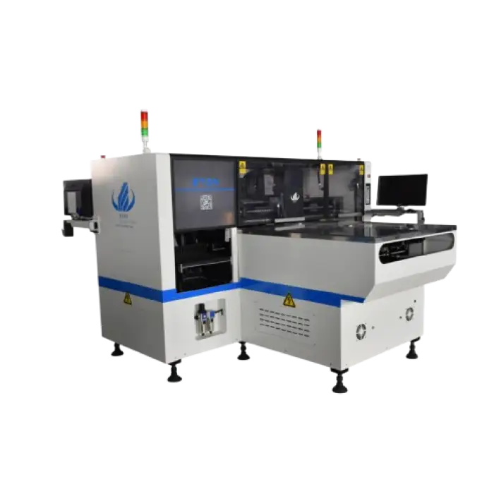 The machine features a compact design suitable for various PCB sizes, enhancing its versatility.