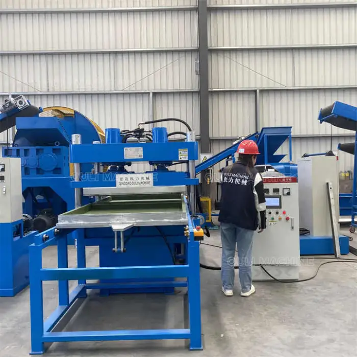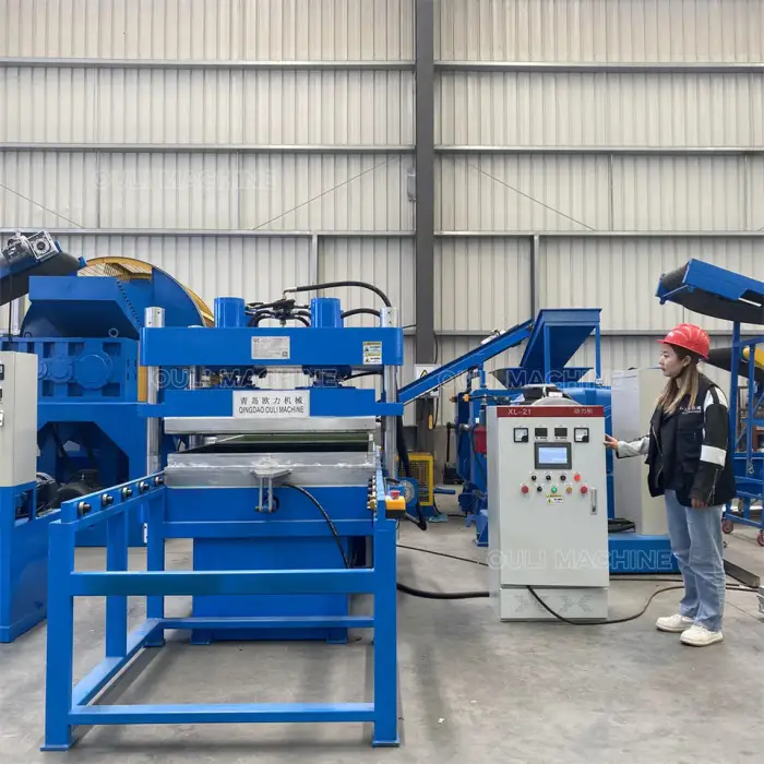 The machine is designed to produce high-quality rubber floor tiles as well as precured rubber products.