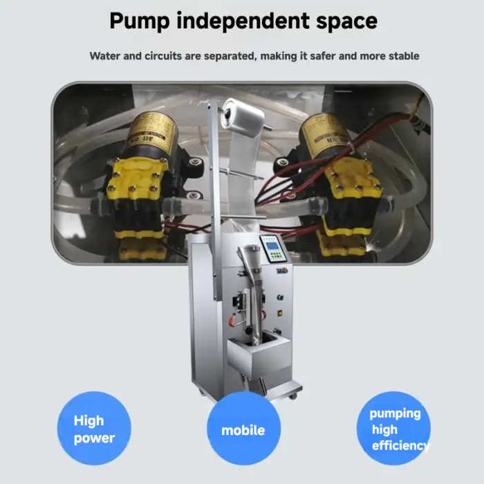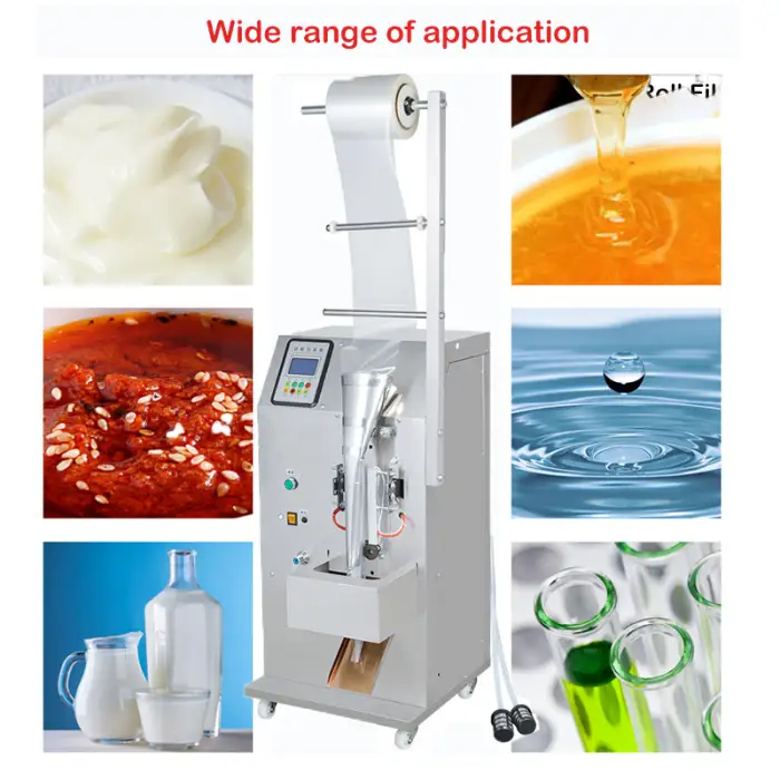 The machine is designed to fill liquid materials, such as flavored liquids for ice pops and other similar products.