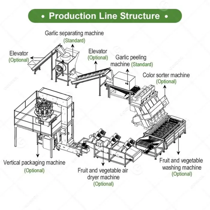 The machine has a peeling capacity of 400kg to 1000kg per hour.