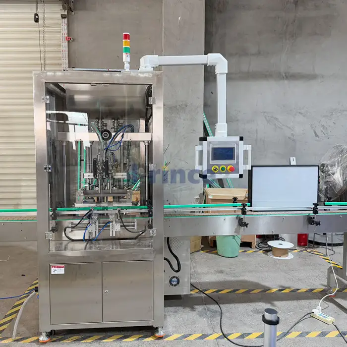 The machine is designed to fill a variety of liquids including cosmetic lotions, shampoos, liquid soaps, creams, and water.