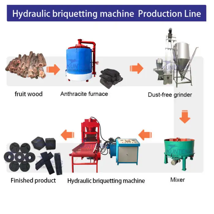 The hydraulic pressure system applies consistent pressure to compress the raw materials into briquettes, ensuring a high-quality final product.
