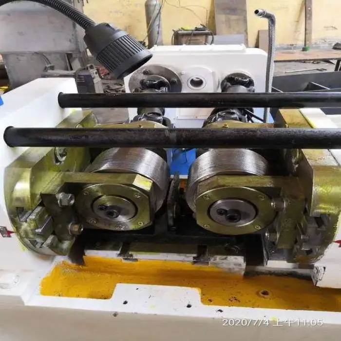 The machine is designed to work with various metal rods, suitable for creating strong and precise threads.