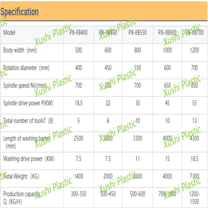 The machine has various capacities ranging from 300 kg/h to 2000 kg/h, suitable for different recycling needs.