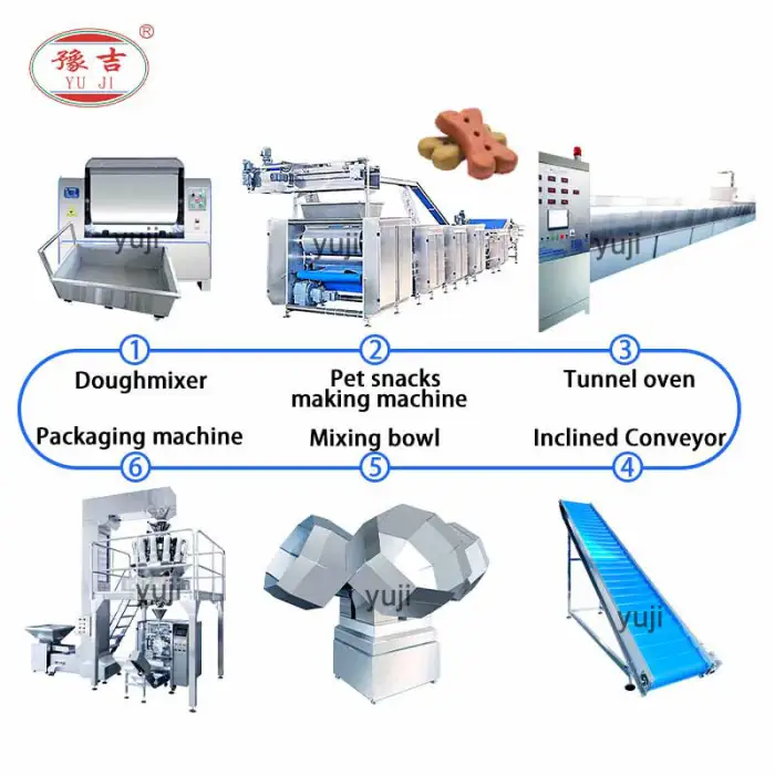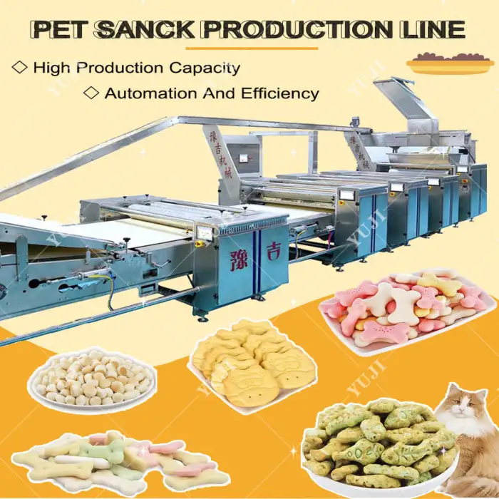 The equipment can produce a variety of pet snacks, including different flavors and shapes.