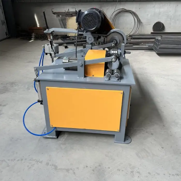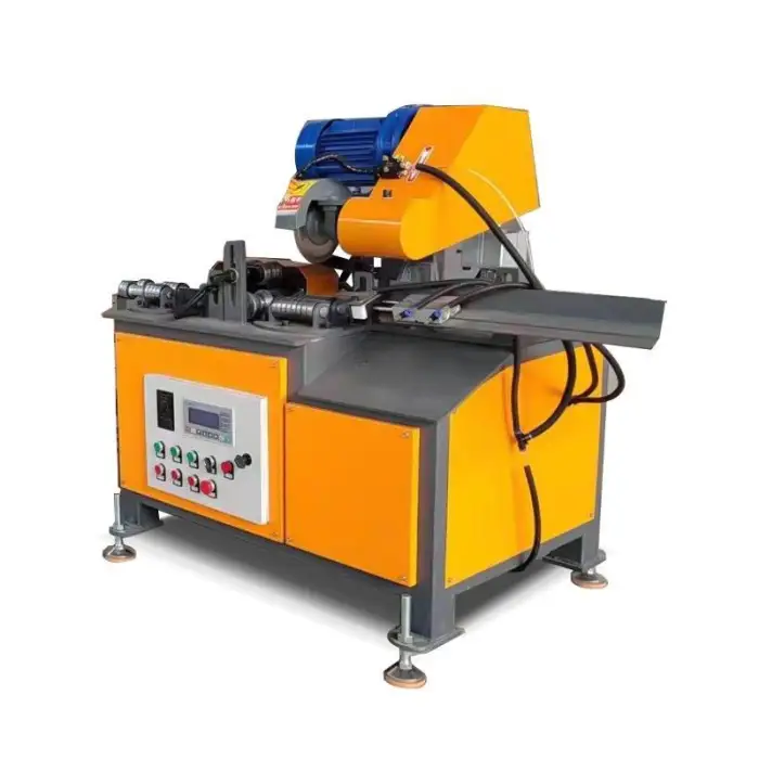 The machine features an automatic hydraulic feeding system that simplifies the cutting process and improves productivity by reducing manual intervention.