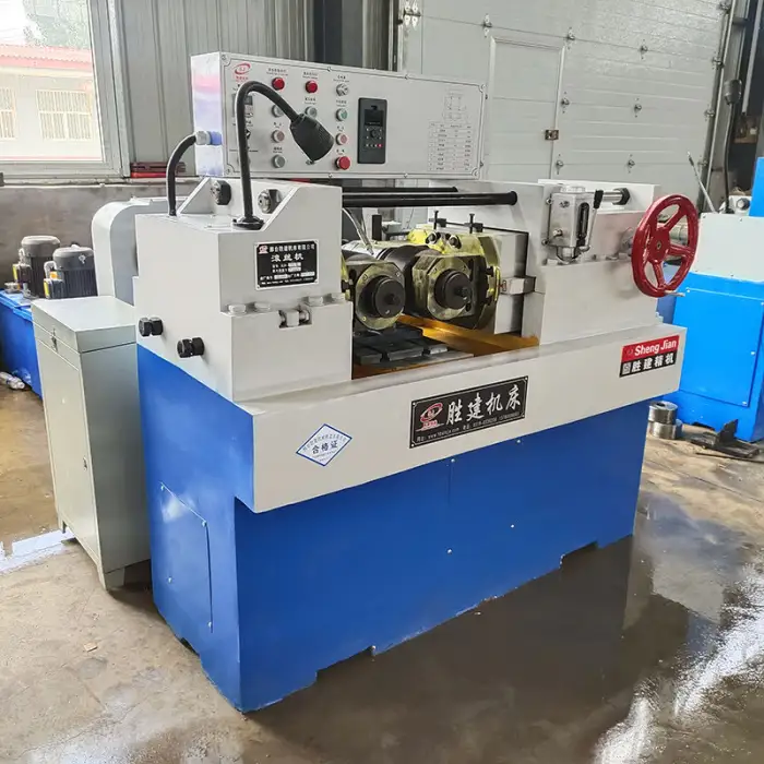 The machine is specifically designed for producing mining anchor bolts, typically made from high-strength materials suitable for anchoring.