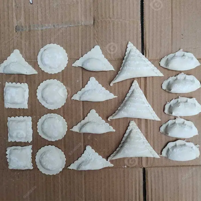 The Automatic Punjabi Rissois Samosa Patti Dumpling Ravioli Make Machine can make dumplings, samosas, spring rolls, and various other filled snacks.