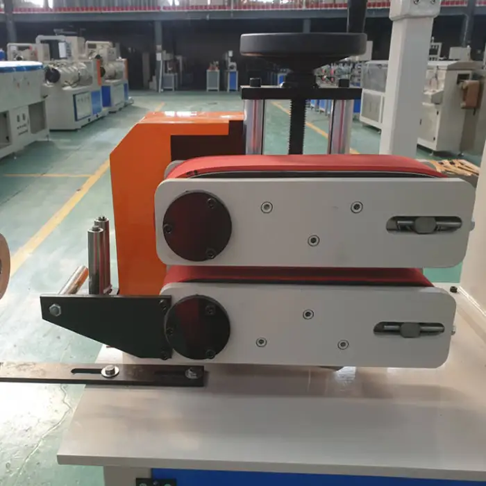 The machine is designed to efficiently cut PVC, PP, and PE materials.