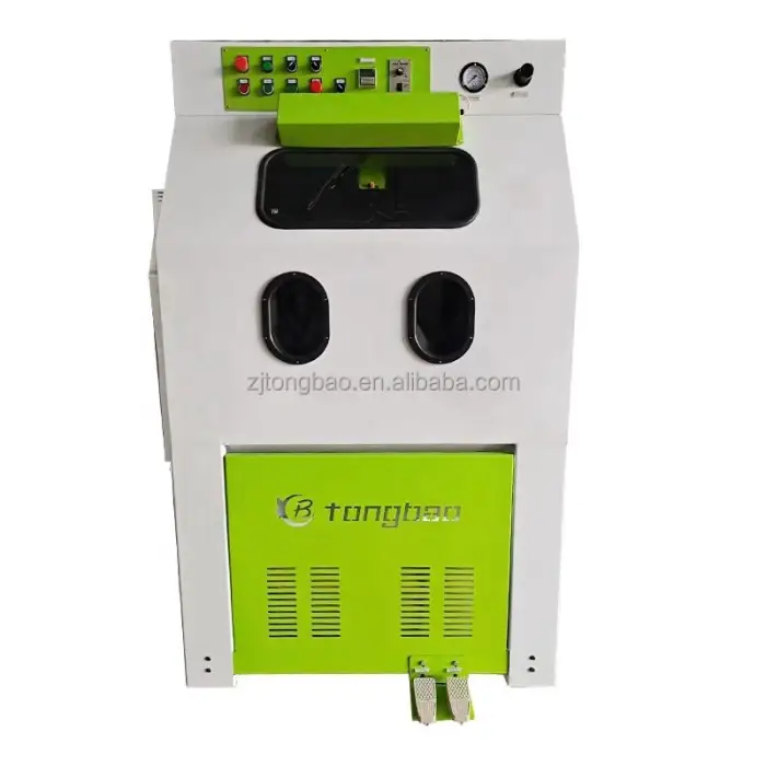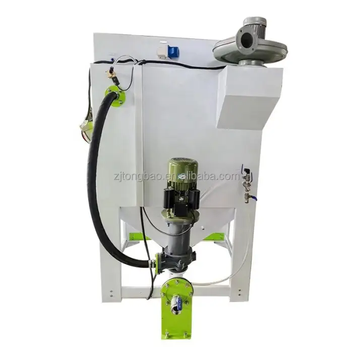 This machine is designed to clean metal surfaces, including car and motorcycle parts, using sand and plastic balls.