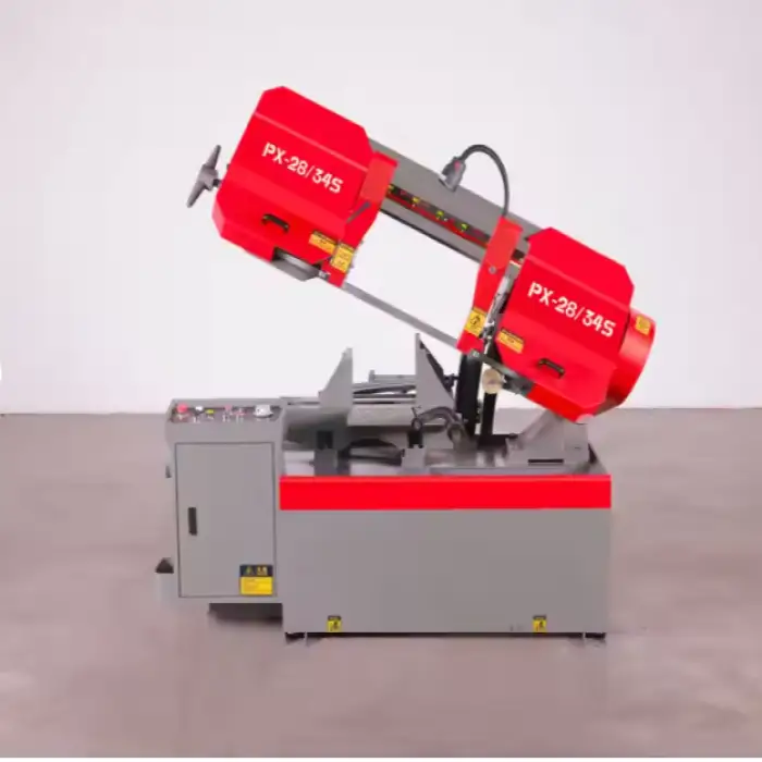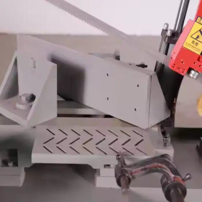 The machine uses a mechanical blade tension method, ensuring reliable performance during operation.